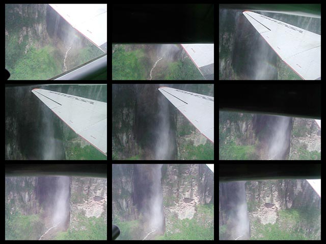 遊覧飛行でエンジェルフォールを間近で見たところのムービーです。ホントに滝壺がありません。一瞬ですが、虹がかかっているのが見えます。index画像はここ(55.2kb)をクリック。 |