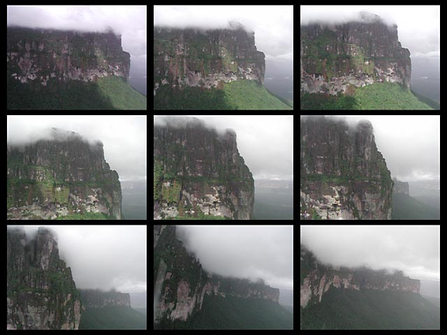 | ●ギアナ高地遊覧飛行(5.37MB/28秒) | これも遊覧飛行中のムービーです。頂上付近は雲で隠れていますが、セスナは雲の直下を飛行し岩山に迫っていきます。index画像はここ(54.9kb)をクリック。 |